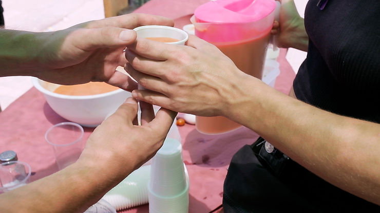Acudieron a la jornada aportando su mejor tomate y su tomate mas «feo», los huertos comunitarios de Carolinas, Cementerio, Tómbola, Florida, del Centro Social «Playas» y del IES Cavanilles, compartiendo entre todos hortalizas para la elaboración de un gazpacho solidario, elaborado según la receta de la familia que regenta el Bar el Loco, institución gastronómica situada en el Vial de los Cipreses desde hace más de 50 años.
