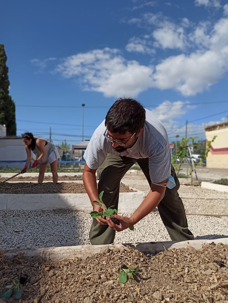 Gracias a la aportación de semillas del Banc de Llavors de l’Alacantí, de la mano de su voluntario Hans, que nos acompañó a lo largo de la jornada se sembraron habas, guisantes, patatas, ajos y mizuna. Además se plantaron cebollas, puerros, coliflor y brócoli.