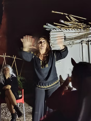 Se inicio a las 18:00 en el huerto comunitario con mucha animación, niños y adultos se pusieron a bailar y la gente del barrio se fue pasando poco a compartir y disfrutar de las historias de miedo.