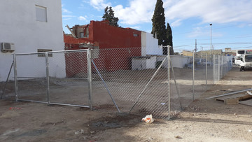 Tramitada la correspondiente licencia de obras, se realizó el aporte de tierras y nivelado con apoyo de un vecino del barrio que disponía de maquinaria adecuada y para el vallado se contrató con una empresa local de cercanía.