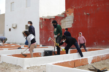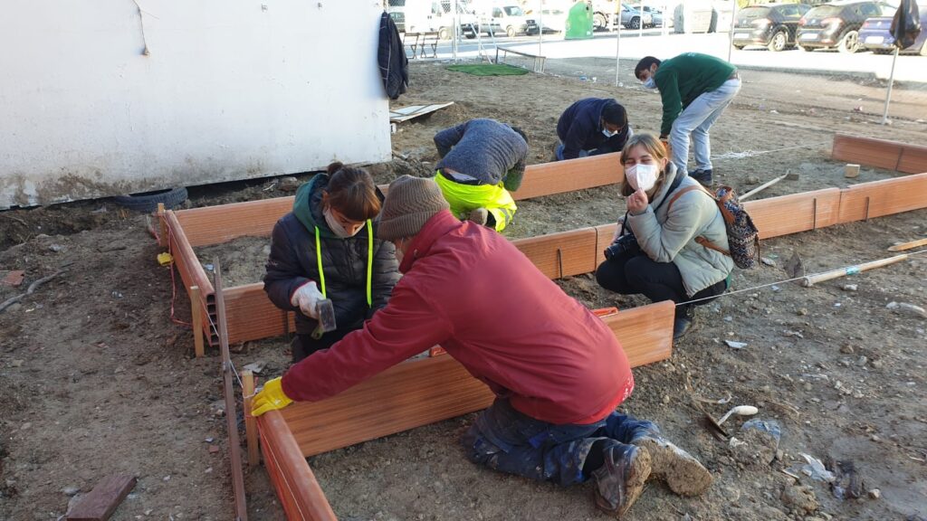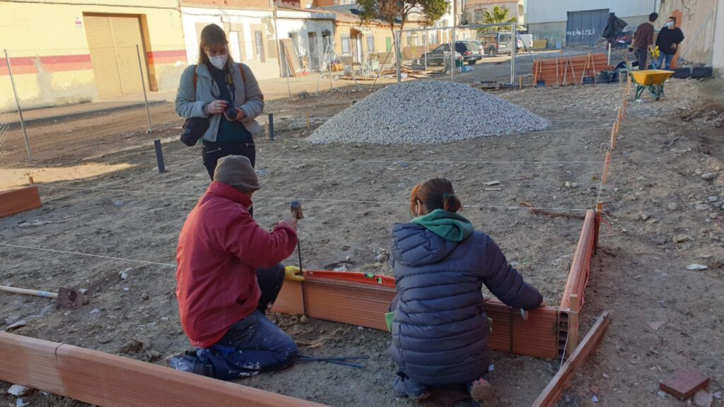 El resto de los trabajos se están realizando a través de jornadas participativas dirigidas por técnicos/as, voluntarios/as y colaboradores/as de ASFE y Quatorze, así como personal especializado en agricultura y talleres formativos de la asociación G.R.A.M.A y la Cooperativa ALTUR especializada en trabajos en altura y construcción, junto a la participación de los vecinos/as implicados en los huertos y todo aquel, que curioso por lo que está sucediendo en su barrio se anima a participar.