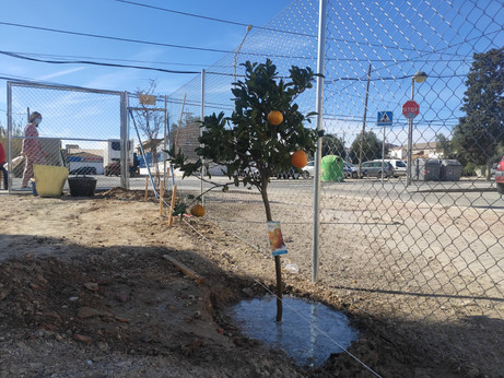 Paralelamente, se están buscando soluciones para solventar el estancamiento de aguas de lluvia a mitad de parcela y un punto de suministro de agua para riego comunitario. Están en curso conversaciones con Aguas de Alicante, con quien el grupo Asertos tiene un convenio firmado para las intervenciones en el Barrio desde 2019.