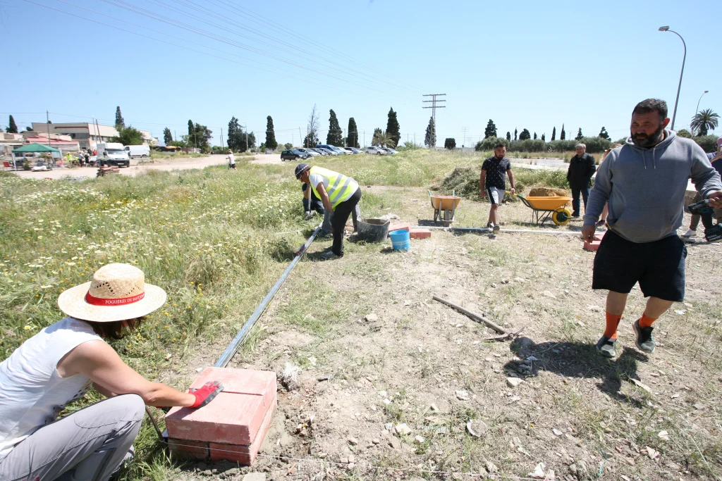 A través de la Fundación Rehabitar hemos recuperado técnicas de arquitectura y construcción tradicional durante seis jornadas de trabajo participativo entre visitantes y vecindario del barrio que permitieron comenzar a materializar este proyecto de urbanismo comunitario.