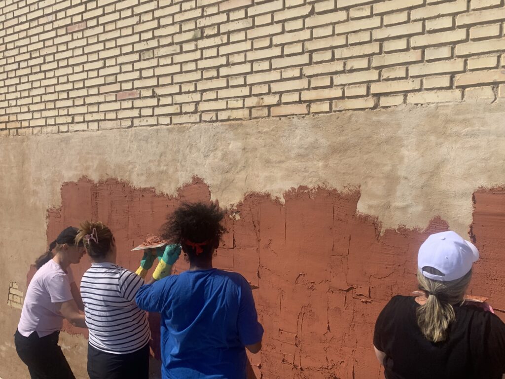 La actividad se centró en la técnica del esgrafiado, una forma tradicional de decoración mural con capas de arena, cal y pigmentos naturales.