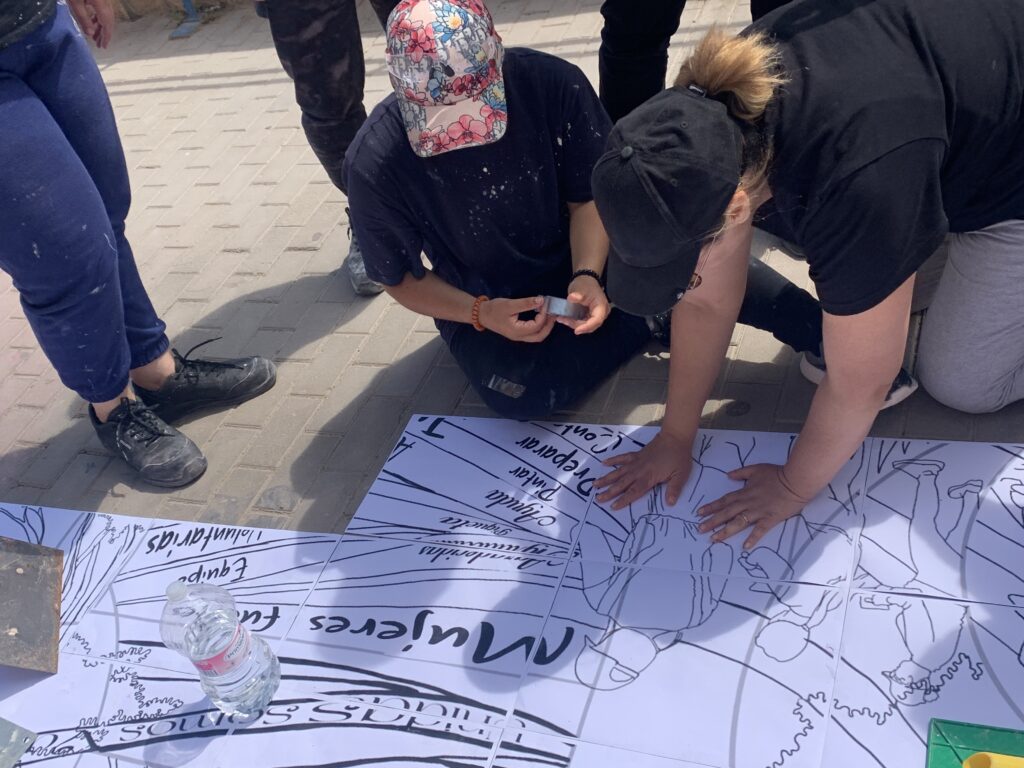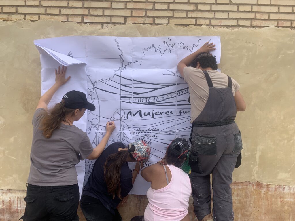 Juntas unieron sus experiencias, emociones y sentimientos sobre el proceso que están viviendo, su familia, su barrio, sus sueños, etc para volcarlo en un diseño colectivo que posteriormente se llevó al muro.